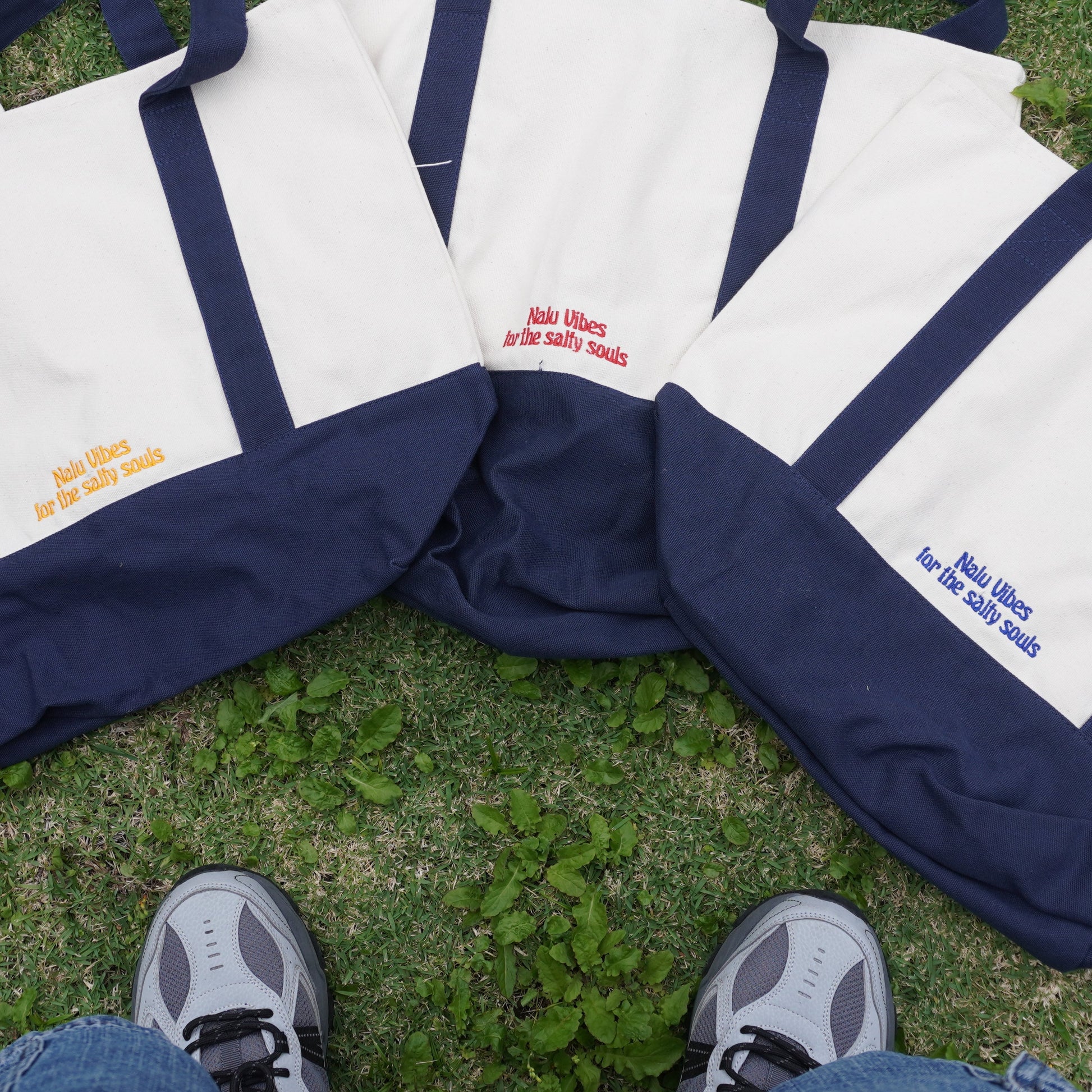 From sunrise surf sessions to sunset beach hangouts, this eco-friendly embroidered tote bag is designed for the ultimate coastal lifestyle. Featuring a traditional Hawaiian quilt-inspired Ulu design, this heavy-duty canvas bag is spacious enough to hold your towel, surf wax, and beach essentials while maintaining a premium tropical aesthetic. Crafted from sustainable materials with reinforced navy handles for extra durability, it’s built to handle the weight of your gear while supporting small-batch, conscious production. Whether you’re using it as a surfer bag for your fins and accessories or a stylish beach tote for a day in the sun, this high-quality embroidered piece brings a touch of authentic island vibes to every adventure.